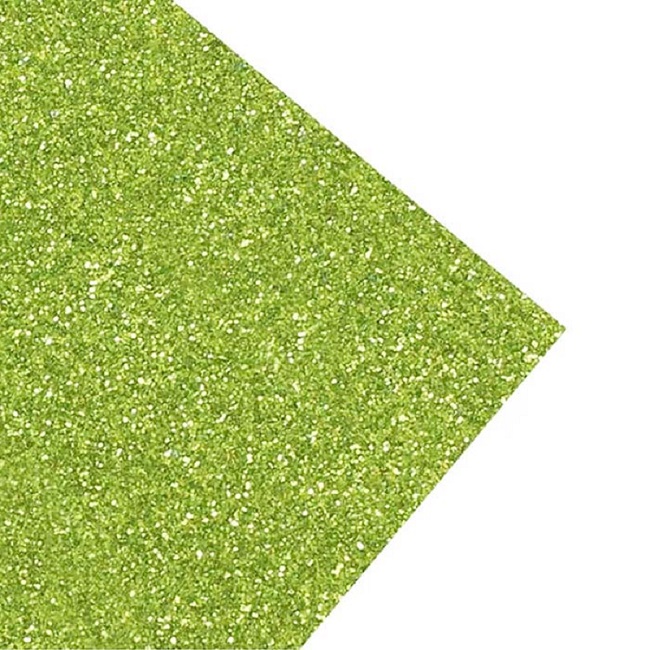Goma eva de color verde claro con brillantina fácil de cortar, dura más que la cartulina y no se arruga fácilmente. Ideal para manualidades y trabajos escolares